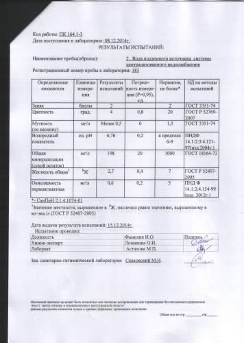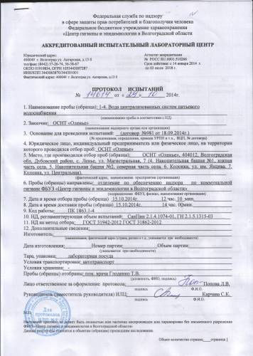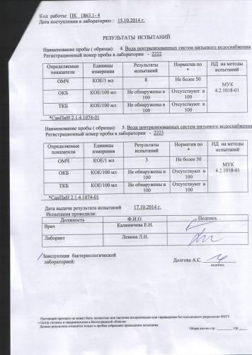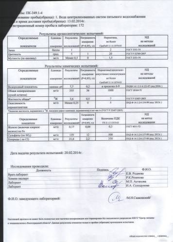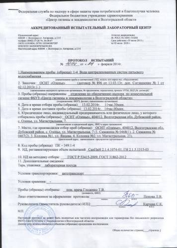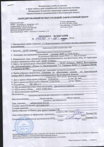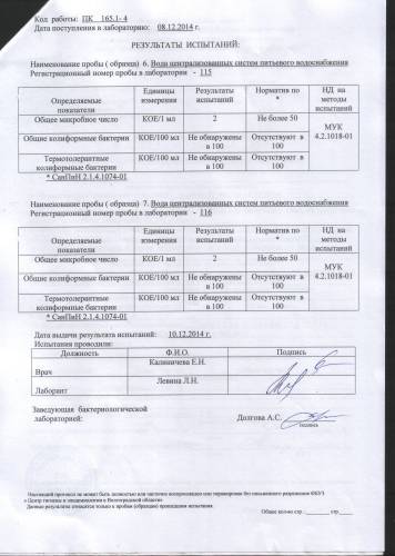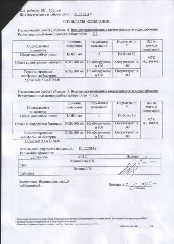 Главная » 2015 Февраль 05 » Результаты испытаний воды централизованных источников питьевого водоснабжения