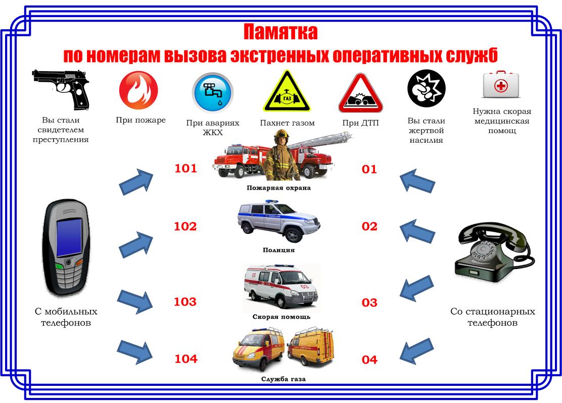 Памятка по номерам вызова экстренных оперативных служб